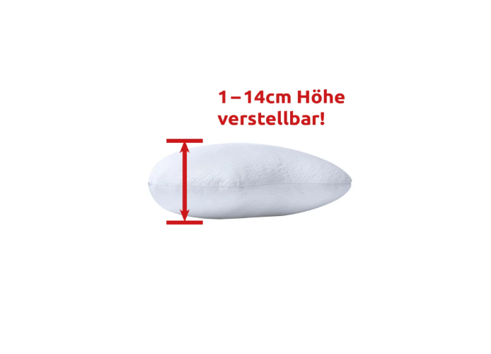 Einfach das speziell entwickelte Füllmaterial entnehmen oder zusätzlich einfügen und schon können Sie Ihr LINA-Kissen auf die gewünschte Höhe und Härte einstellen, um die für Sie optimale Schlafposition einzustellen.